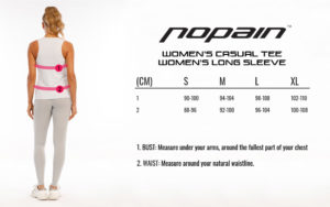 NoPain women’s casual tee is made by Scandinavian size guide. If you are normally wearing M-size sport clothing, right size for you is M. Size examples: